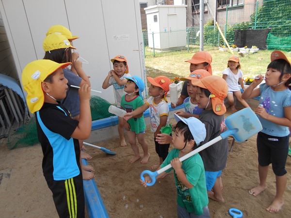 ろけっと組さんがしゃぼん玉で遊んでいて、しゃぼん玉が飛んでくると、大喜びしていました♪
