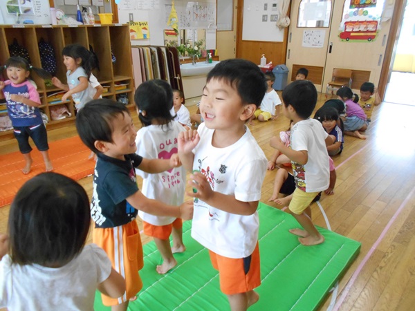 ばす組になってから初めて、マットあそびをしました。
