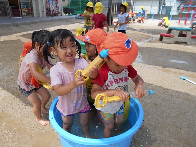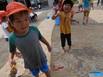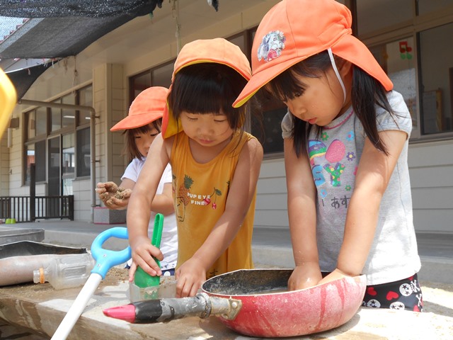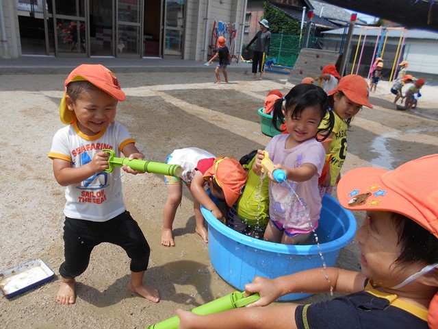 2018年06月22日 今日の活動は...やっぱりこれ。梅雨の合間の晴れた日は気温も急上昇!!こんな日は、外に出てみ・ず・あ・そ・びタライにお水をいっぱい入れて、水鉄砲でビューン■冷たくて気持ちいいこちらの女の子は只今お料理中■なにができるのかな?お団子作りもお手の物!昨年は作れなかったお団子も、手先が器用になり、上手に作れるようになりました。あー楽しかった♪
