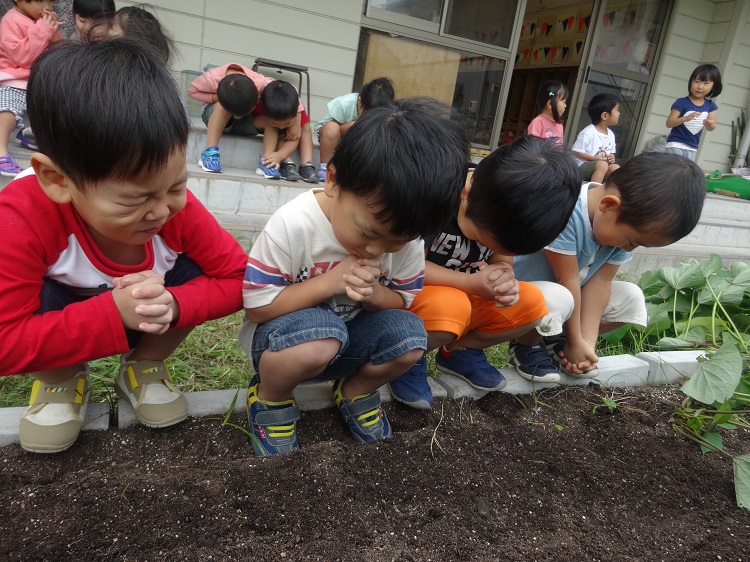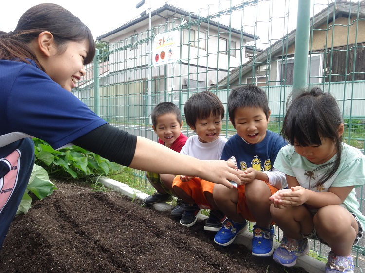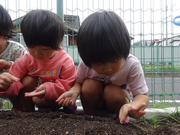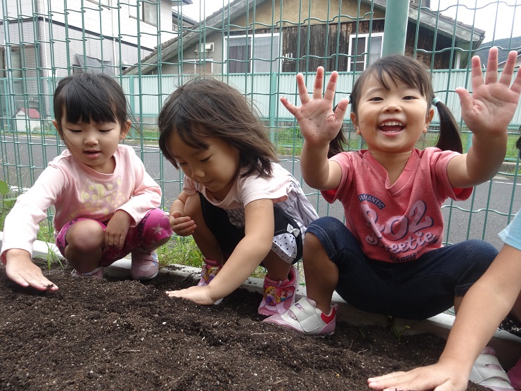 普段触れることのない畑の土は、園庭の土とはまた違った感触で