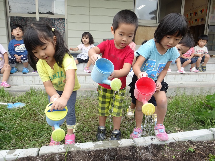 最後は水やり!水やりをするお友だちの後ろでは...