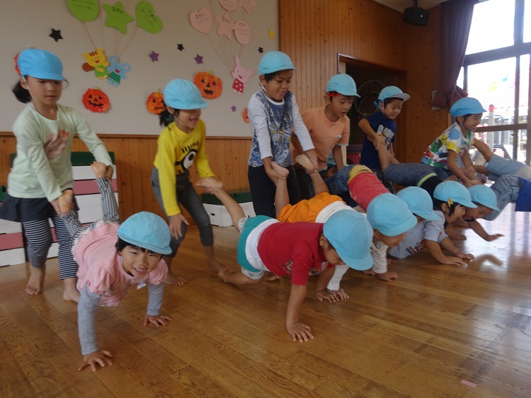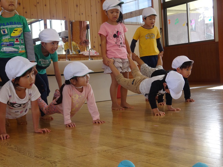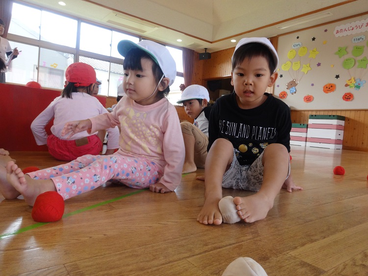 2018年10月12日 いよいよ明日は...おしり玉入れの練習をしました!運動会を目前に...気合十分なばす組さんです。初めの頃に比べ、足の先を器用に使って玉を入れるみんな!コツを掴み、一気に2つの玉を入れるお友だちもいました。どのチームも負けじと一生懸命頑張り、とっても真剣な表情を見せてくれました✨運動会もいよいよ明日となりました。子どもたちの輝かしい姿をお楽しみに...✨