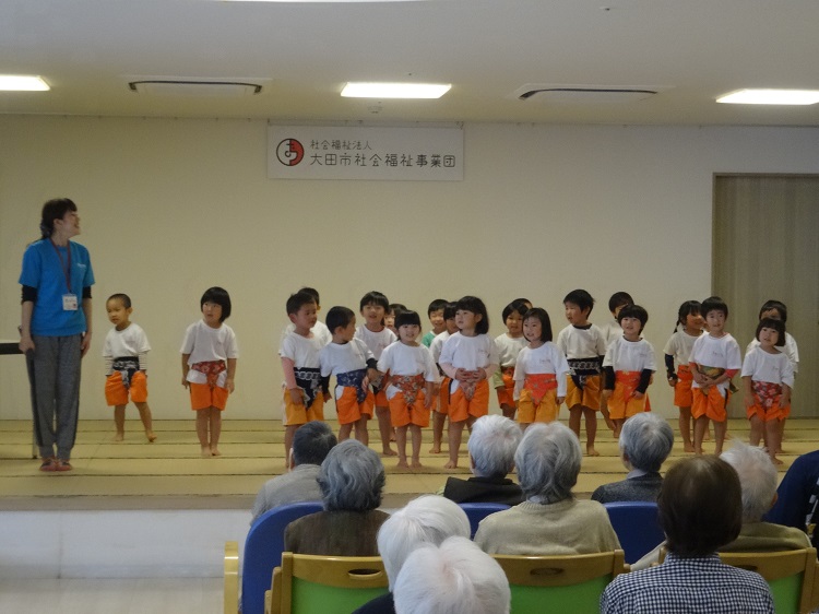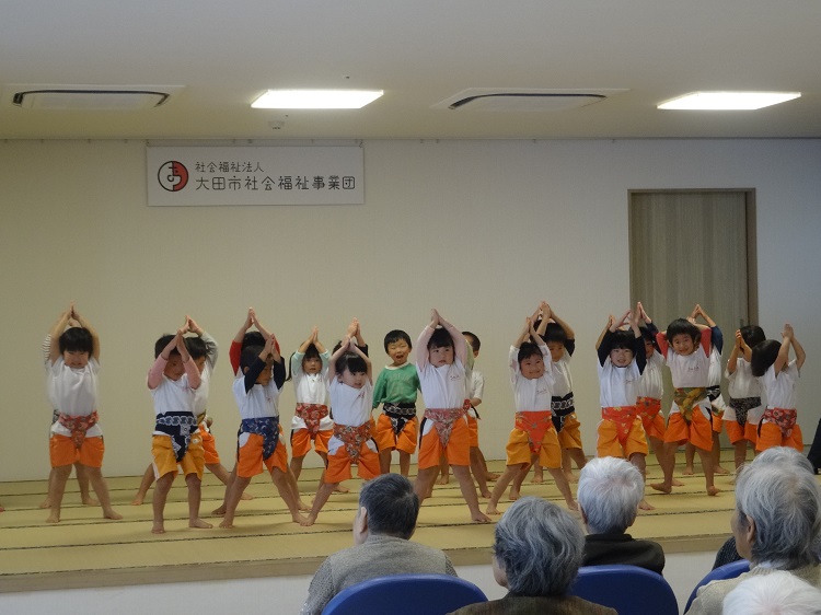 まずはお歌とお相撲体操を披露しました。