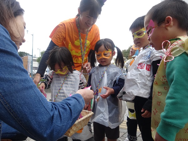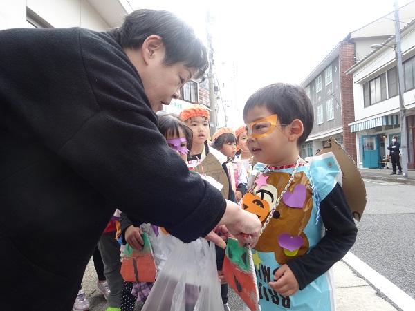 外を歩くと、たくさんの保護者さんや地域の方々が声をかけてくれたり、お菓子をくれたりしました。