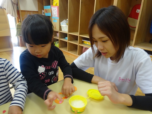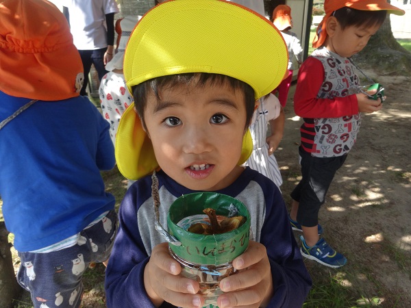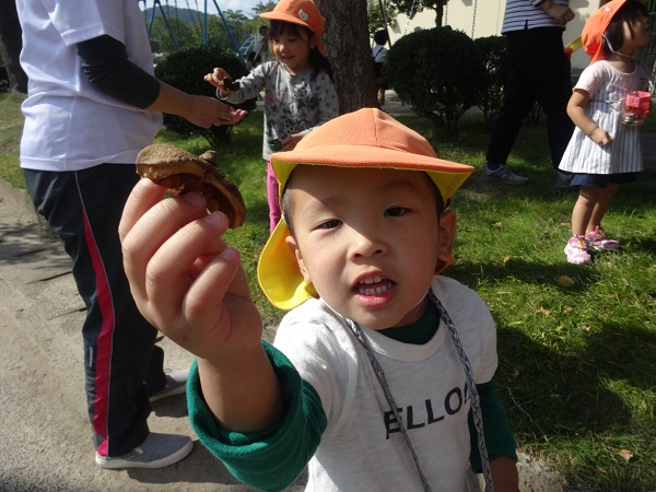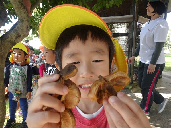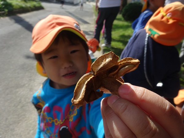 校庭で椿の実を見つけました!「ちょうちょみたいな形だね~!」