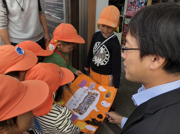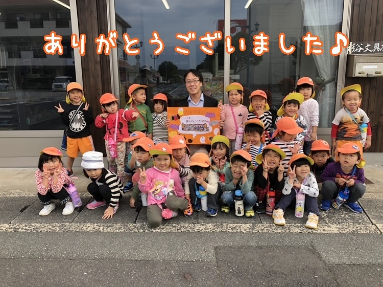 2018年11月08日 ありがとうございました♪ハロウィンパレードでお世話になった、杉谷文具さんとリプラスさんにお礼状を渡しに行きました。「ありがとう」の気持ちを込めて、みんなで渡しましたよ。いつも相愛保育園の子どもたちを可愛がってくれてありがとうございます!これからもよろしくお願いします。保育園に帰ってからは、ダンスやお相撲の稽古をしました。今週末にある保育参観での相撲大会に向けて、張り切っているばす組さんです✨
