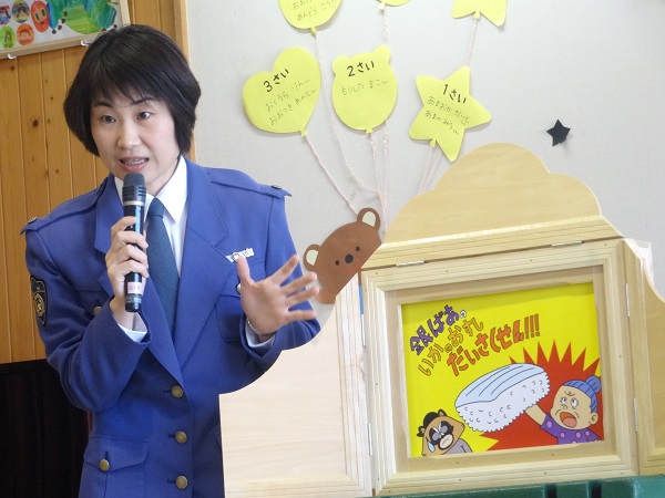 紙芝居を見たり、知らない人に声をかけられたときどうしたらいいか教えてもらったりしましたよ。