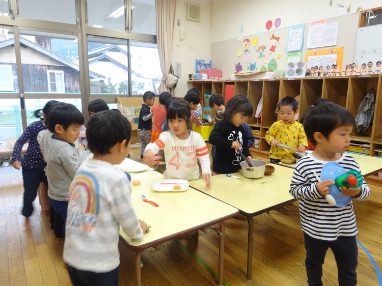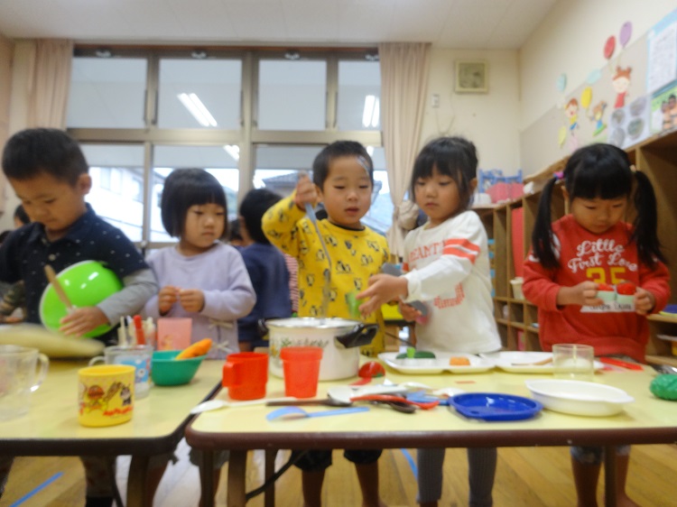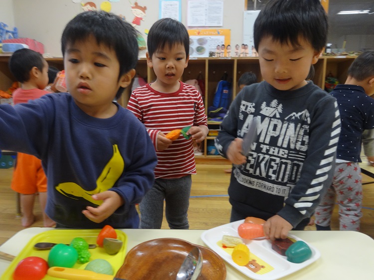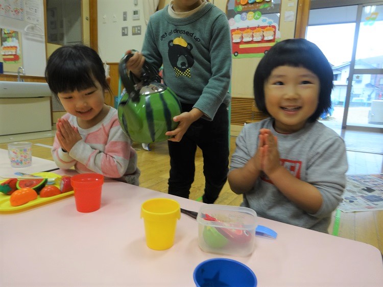 今日も楽しいこといっぱい!まずはおままごとをしました。