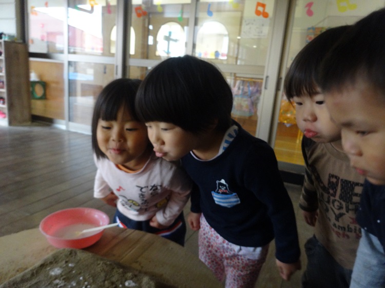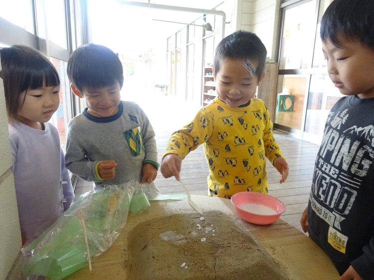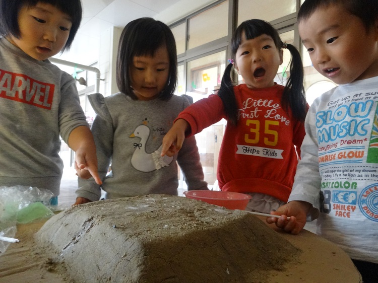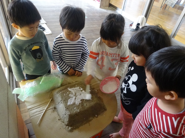 本物の土なので無事完成するのか...子どもたちも保育者もどきどきです。