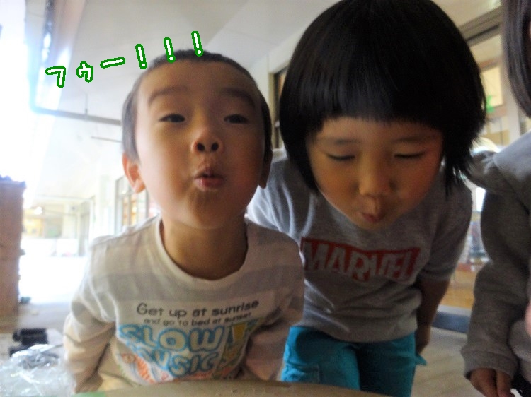 「あ!少しひびが入ってる!」とひび割れた部分はみんなで慎重に修正していきました。