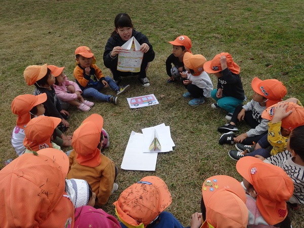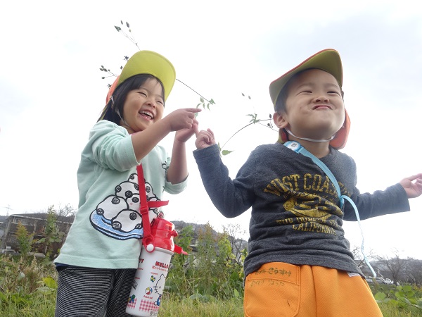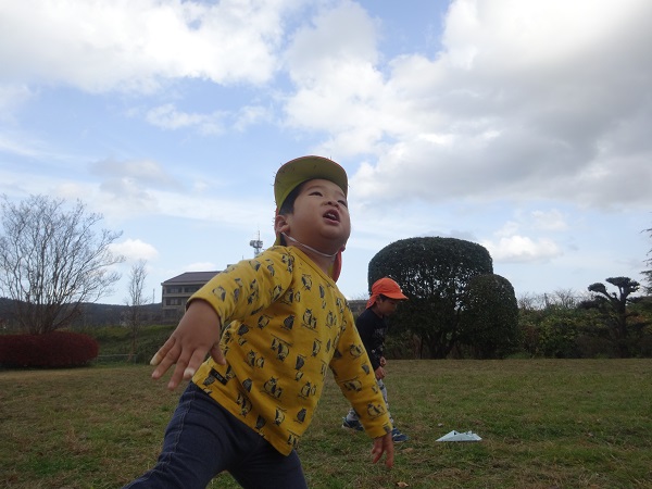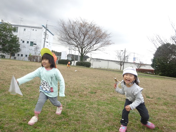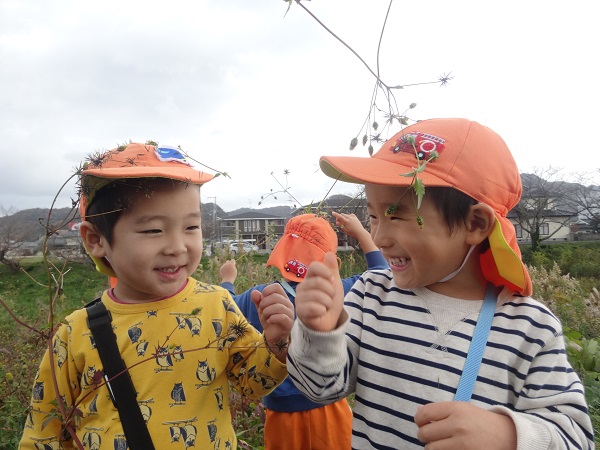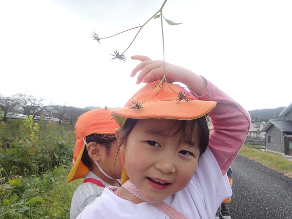 2018年11月29日 楽しすぎてしょうがない!お散歩に出かけると、くっつき虫を発見!楽しくて楽しくて、みんなでくっつけ大会が始まりましたよ☆楽しみながら歩き、長久児童公園に到着!今日はみんなで紙飛行機を作って飛ばしてみました♪「さん!に!いち!ぴゅ~ん!!」「お~、お空に飛んでった~!」誰が遠くまで飛ばせるか、競争もしましたよ!毎日の色々なことが、楽しくてしょうがないばす組さんなのでした♥