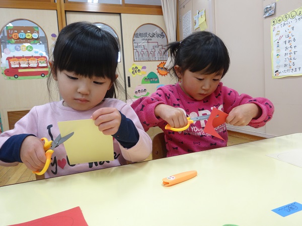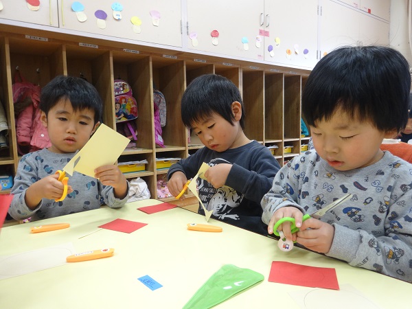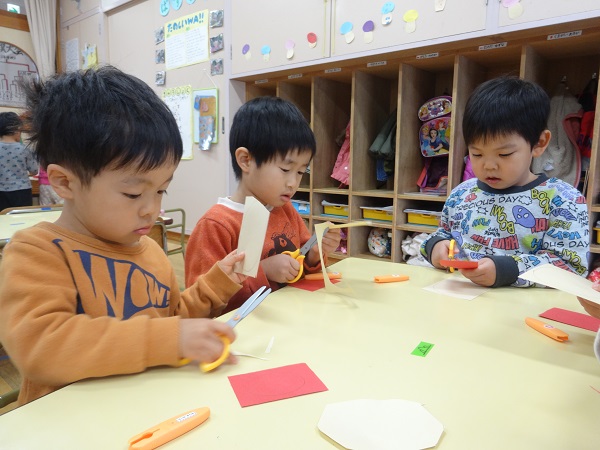 まずは、○が描いてある画用紙をはさみでチョキチョキ✂