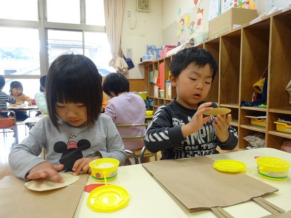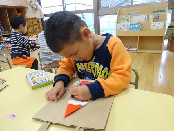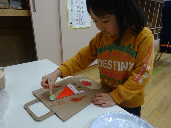 20日のクリスマス会でサンタさんからもらえる(?)プレゼント袋を作りましたよ。