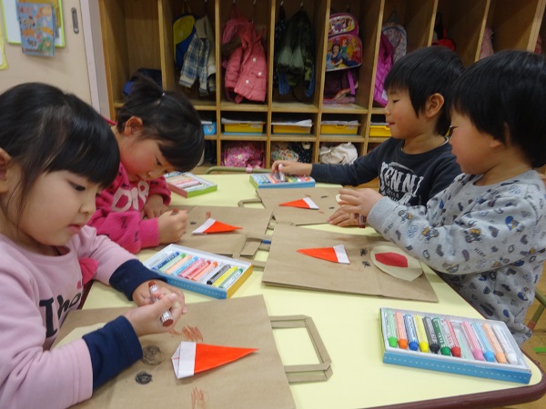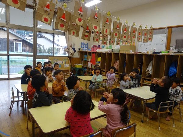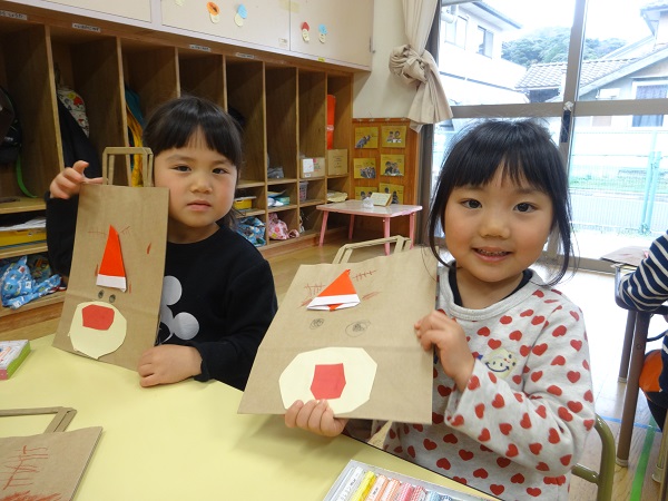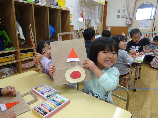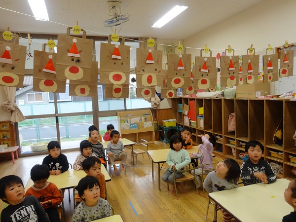 プレゼント袋が出来上がり、みんなで「トナカイ☆サンタさん!プレゼントくださ~い■」とお願いしました☆
