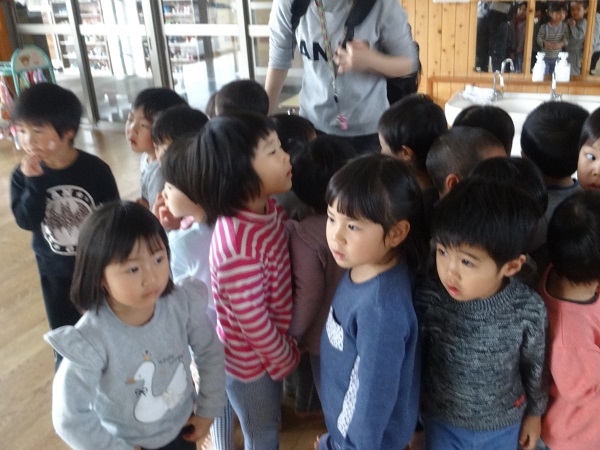 非常ベルが鳴り、すぐに担任の所に集まるばす組さん。
