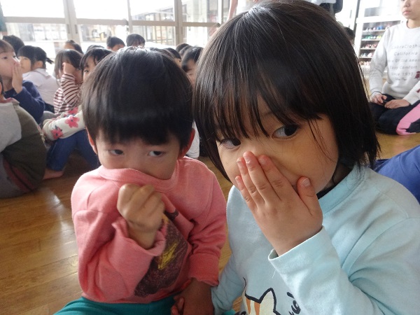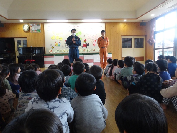 今日は大田消防署から消防士さんが2名来られ、火事の時のお約束事や家事の恐ろしさなどを教えてもらいました。