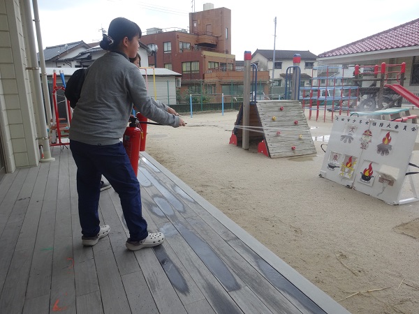 消火器を使った訓練も見学しましたよ。