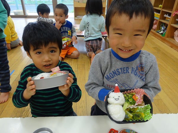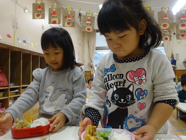 お部屋に帰った後は、楽しみにしてたお弁当ごっこをしました。