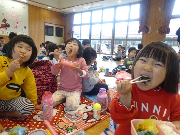 美味しいお弁当に、にっこりにこにこ☻なばす組さんです!