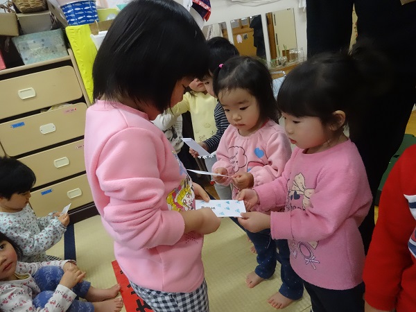 紅白歌合戦が終わると、りんご組さんからお年玉をもらいました。