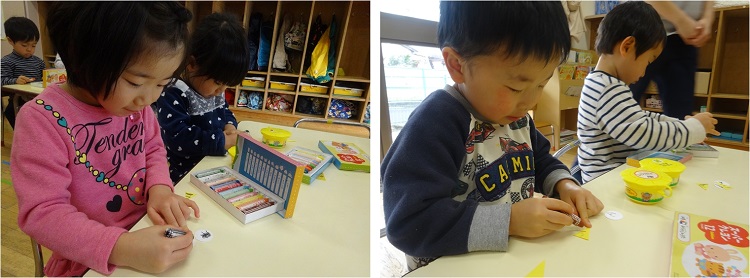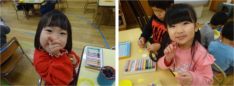 「優しい鬼さん作ろうっと■」と一人ひとりが鬼の表情や角の模様を工夫しながら、丁寧に作り上げていましたよ。