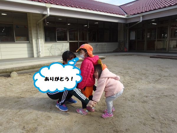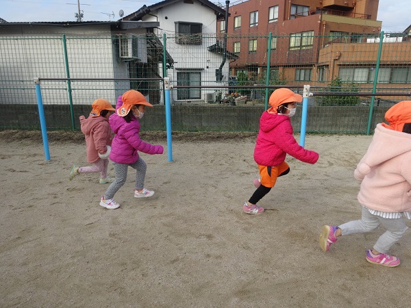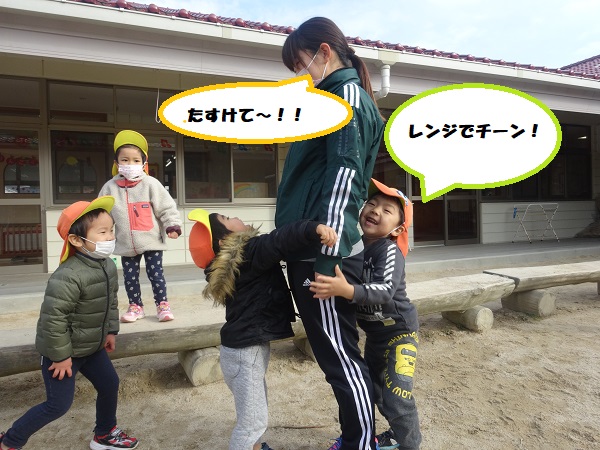 2019年01月30日 レンジでチーン☆外で元気に”レンジでチン鬼ごっこ”をしました。嬉しくて「やったー!」と大喜び!!「こうやってやるんだよね!」と、子ども達同士でルールを確認し合う姿も見られました。それでは...よーいどん!思いきり走って大盛り上がり☆大人も子どもも、一緒になってたくさん遊びましたよ✨今日も元気いっぱいのばす組さんでした♪