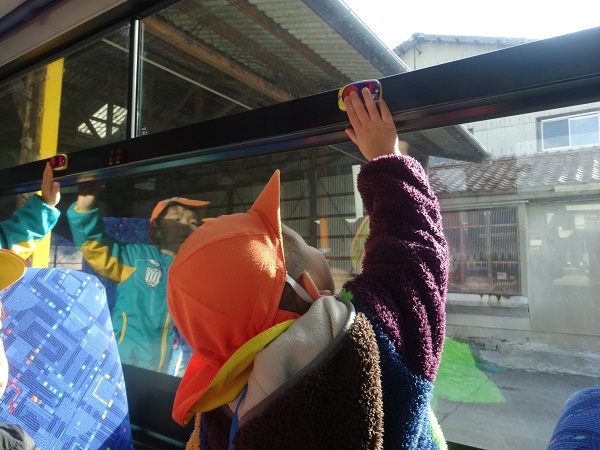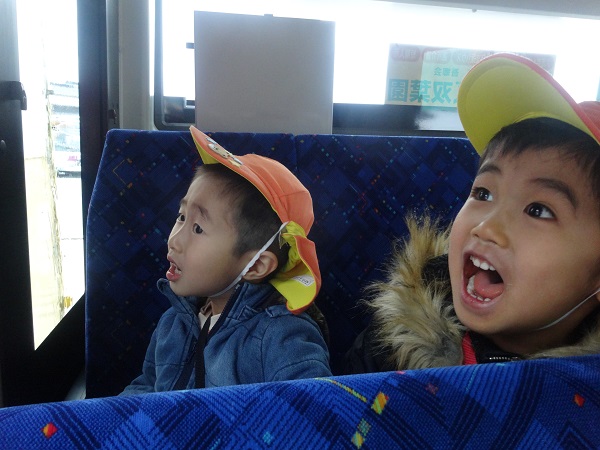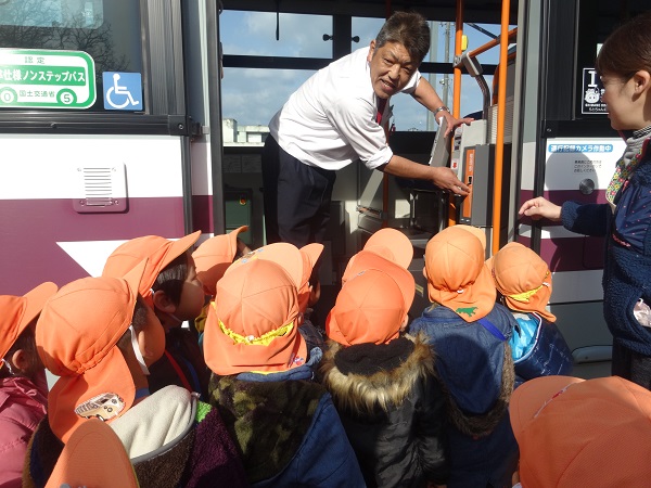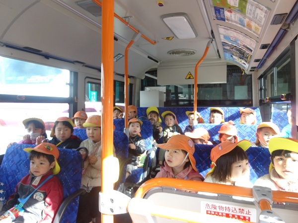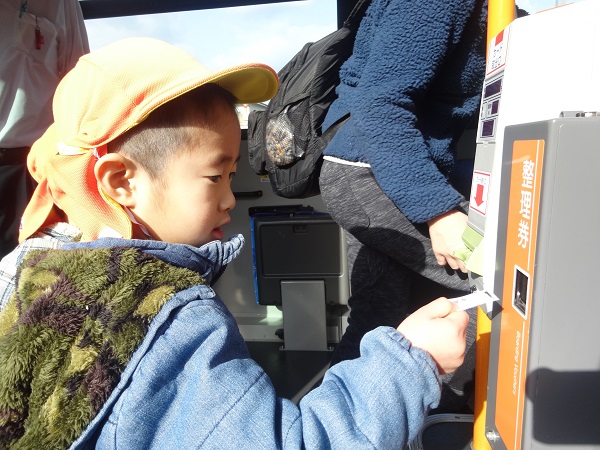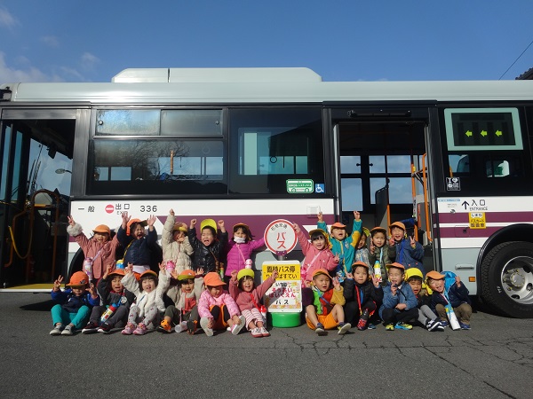 2019年02月12日 ばす組さんばすに乗る。バスの乗り方教室に参加しました。まずは記念にハイチーズ■運転手さんに、切符の取り方を教えてもらいましたよ!「なんだか遠足みたい■」「どこに行くのかな?」とうきうき!!ピンポ~ン♪ボタンを押してみました。かっこいい帽子をかぶらせてもらい、気分は運転手さん♡洗車機の中を通ったり、保育園まで送ってもらったりと、見るものすべてに興味津々のばす組さんでした。