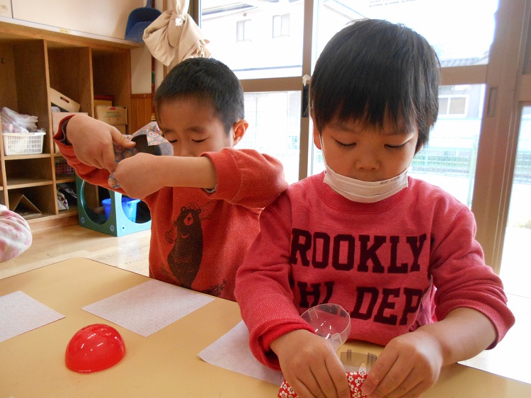 この作業がなかなか難しく、とても集中して取り組む子どもたちでしたよ。