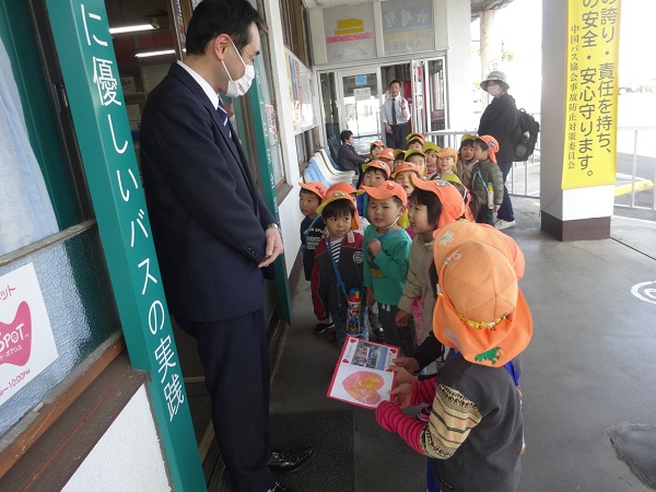 バスセンターでは、バスの乗り方教室に参加させてもらったお礼を渡しました。