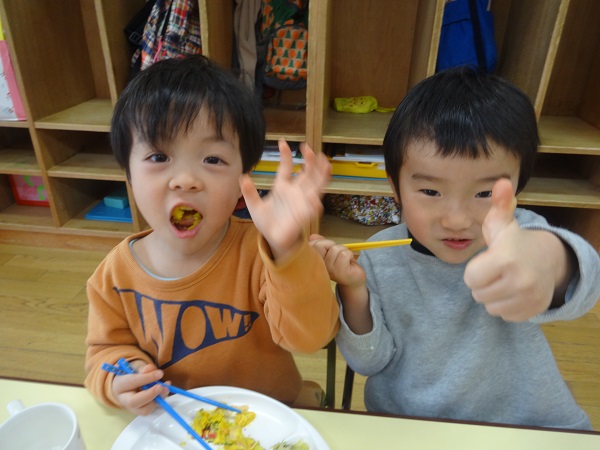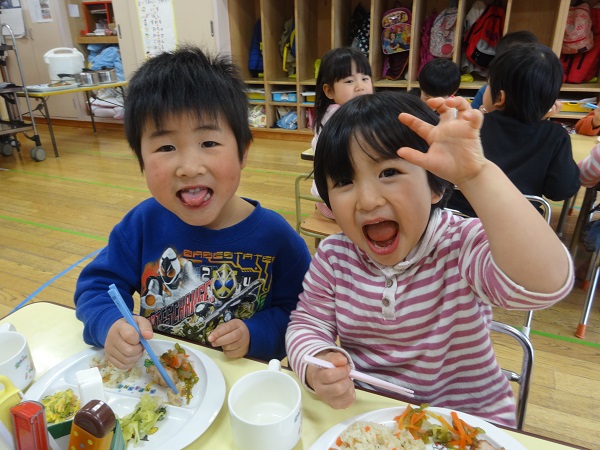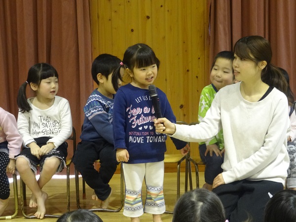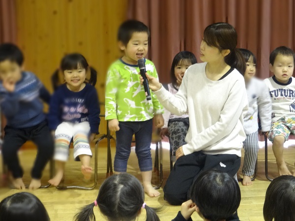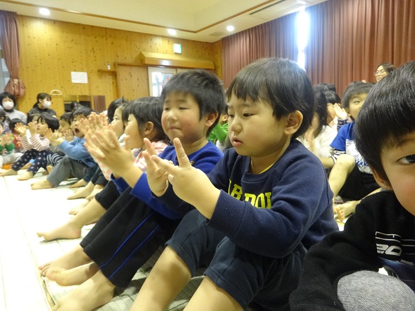 2019年02月27日 ハッピーハッピー!今日はお誕生会✨ばす組さんからは3名のお友達がお祝いしてもらいましたよ。お友だちを見守るみんなも真剣です。園長先生からプレゼントをもらってニッコリ♡先生たちの出し物”くるくるシアター”に興味津々!お部屋に帰ってから、みんなで美味しい給食を食べました。美味しくて楽しくて、笑顔がはじけるばす組さんなのでした☆給食日記にもばす組さんの様子が載っています。