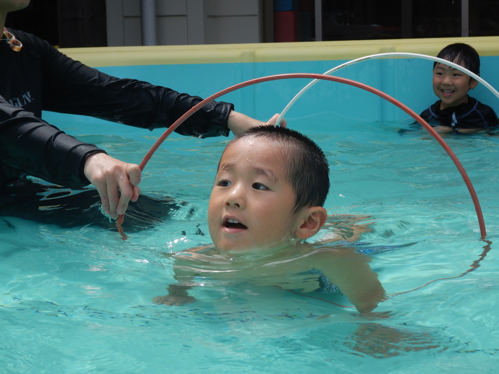 プール遊び♪ プール遊びをしました! プールのお約束を確認してみると… さすが、ばす組さん!!久しぶりのプール遊びでしたが、しっかりと覚えていましたよ☆ プールに入ると、「お兄ちゃんに顔つけ教えてもらってきた!!」と、自ら顔つけに挑戦したり、「ぼく、泳げるよ!」と、泳いで見せてくれたり…やる気満々の子どもたち♪ プールに入るたびに成長していく子どもたちの姿に驚いています!! 残り数回のプール遊びも、思いきり楽しんでほしいと思います♪