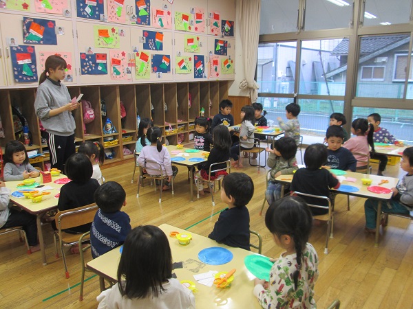 2018年01月17日 はさみでチョキチョキ・・・製作の続きをしました。保育士のお話をよーく聞いて・・・さっそくスタート。今日は、線に沿ってはさみで切る作業です。直線は切れるけど、曲線はちょっぴり難しく・・・集中して切る子ども達。「やっと切れた!!」切ったパーツをのりで貼っていくと・・・「できた~■」そうです。節分の日の主役、鬼さんができました。のりが乾いたら、目を描いて完成!!の予定です♪