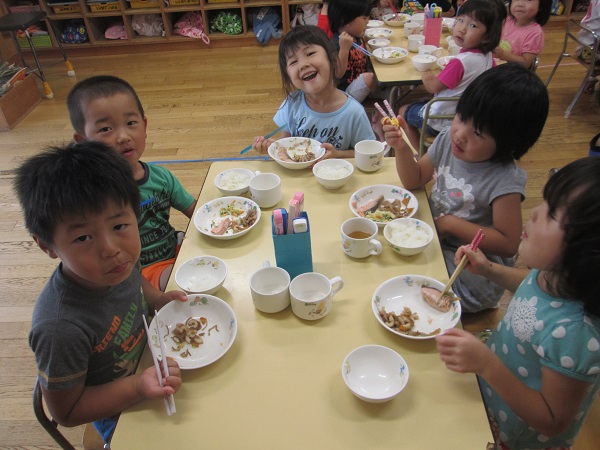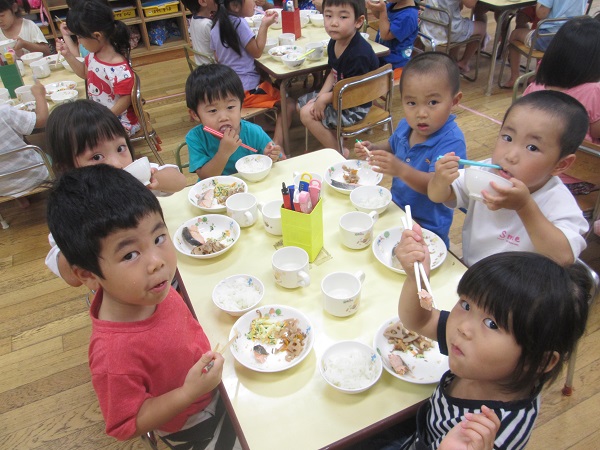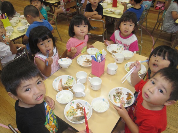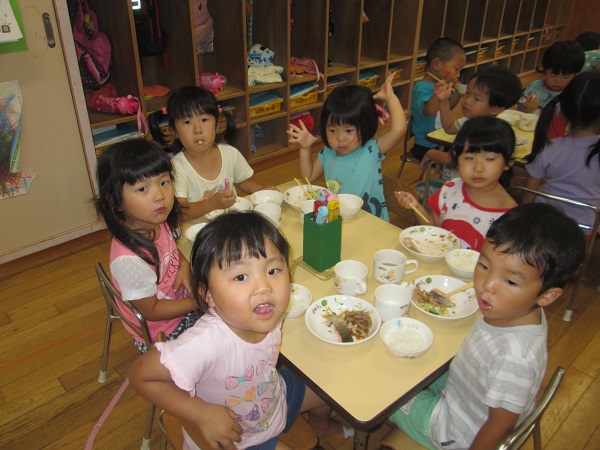 2017年07月05日 おいしい、おいしい給食の時間♪毎日楽しみにしている給食の時間。「今日のごはん、なんだろ~」うきうき、わくわく...❤今日の給食は、みんなの大好きなお魚でした♪おなかいーっぱい大満足のばす組さんでした。