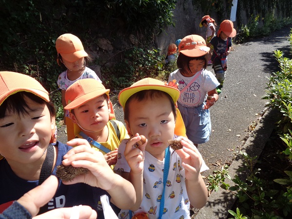 坂道を上ると地面にたくさんどんぐりが落ちていて、夢中で拾っていましたよ♡