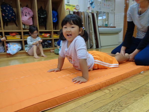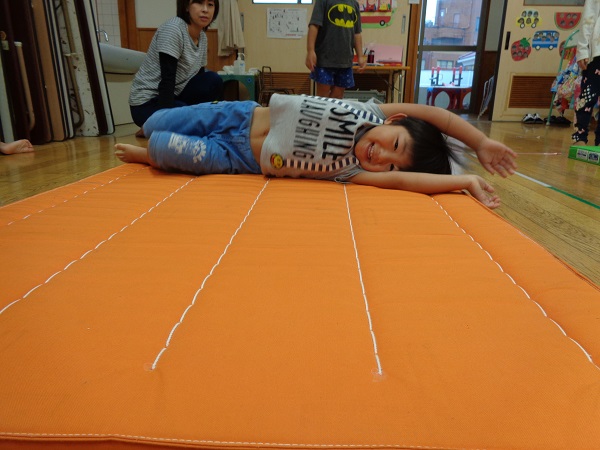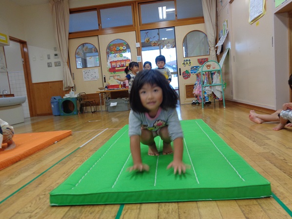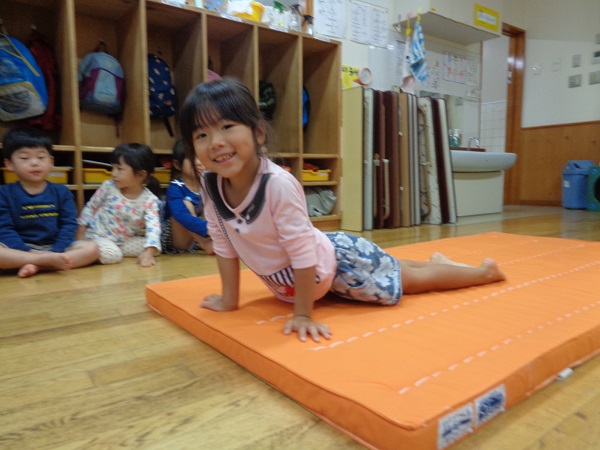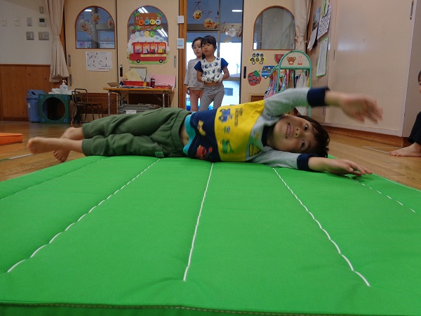 お部屋でマット運動をしました。
