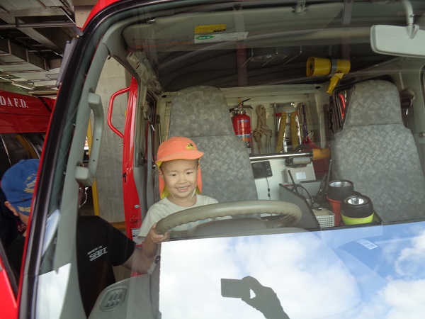 消防車に乗せてもらいましたよ。