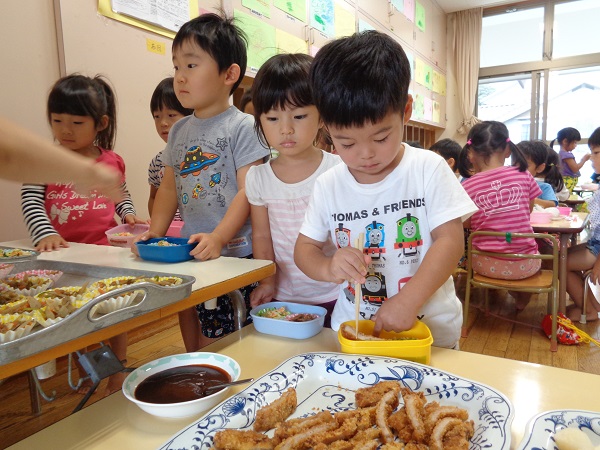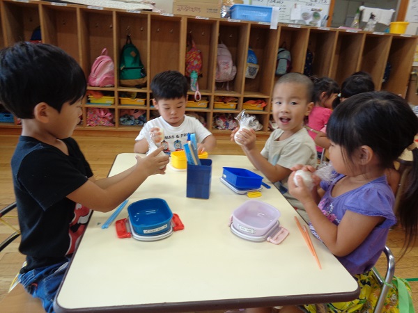 保育園にもどったらさっそくお弁当の準備!