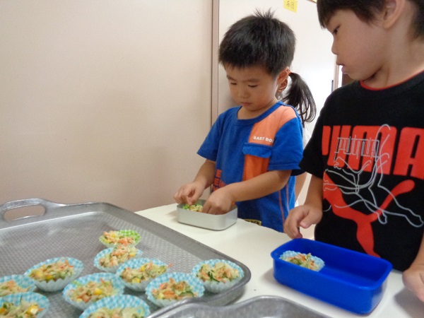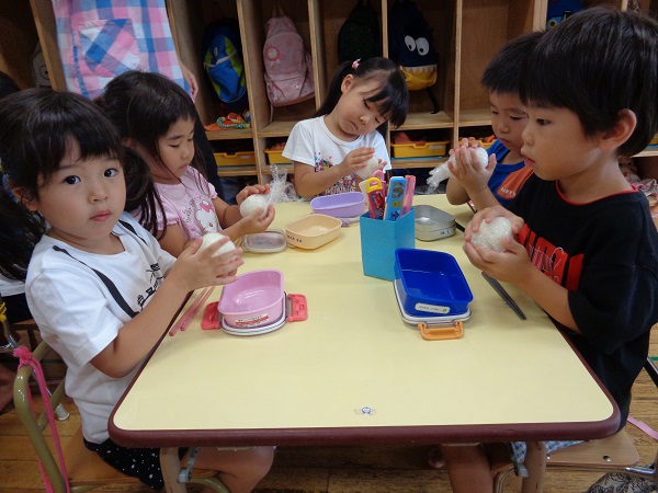 おにぎりを握ったり、おかずを詰めたり・・・