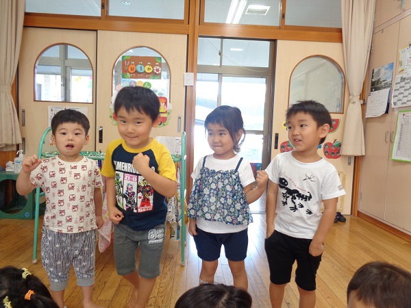 お当番活動が始まりました。日替わりで4人ずつお当番をしますよ。