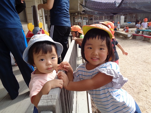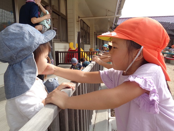 かわいいいちご組さんがテラスや園庭に出てきたので、一緒に遊びましたよ✨