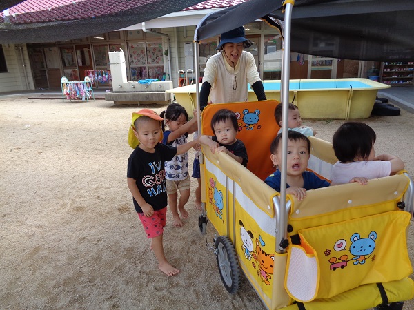 散歩車を押すお手伝いをしていました。