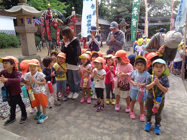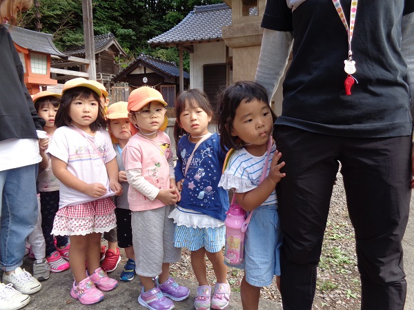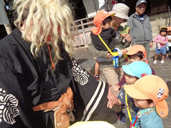 どこからか天狗が出てくるんじゃないかと、先生の後ろに隠れているお友だちもいました。