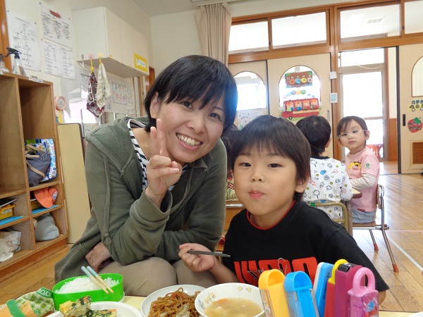 お父さんやお母さんと一緒に食べる給食は、いつも以上に美味しかったね♡
