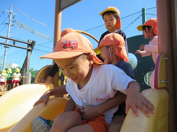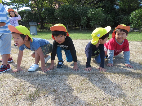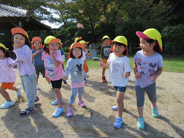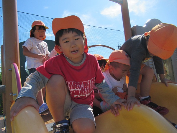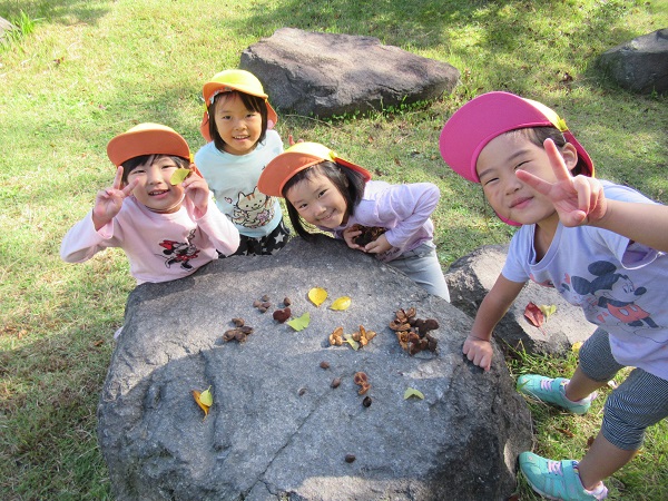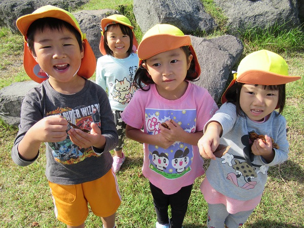 2019年10月16日 笑顔いっぱい!いいお天気の今日は、宮崎公園までお散歩に行ってきました♪公園に着くとさっそくみんなで秋探しスタート☆こんなにたくさん見つけたよ(^^♪思わずニッコリ♪木の実や落ち葉...たくさんの秋を見つけましたよ。秋探しの後はかけっこもしました!「位置について...」「よーい...」「どん!!」かけっこの後は、好きな遊具を見つけて遊びました。元気いっぱい、笑顔いっぱいで楽しんだひこうき組さんでした。