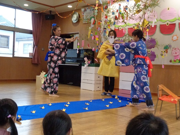 保育者による「七夕の物語☆」の劇を見ましたよ。