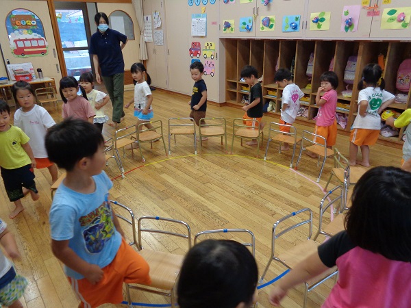 その後はお部屋で「仲良しイス取りゲーム」をしました。
