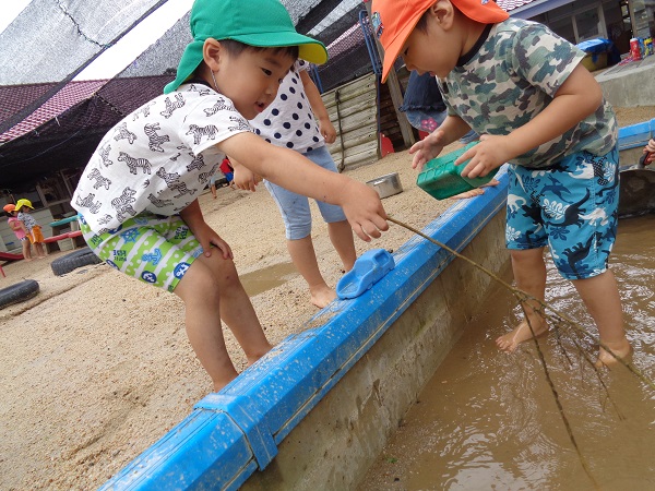 今日も砂場の水たまりでいっぱい遊んだばす組さんです♪