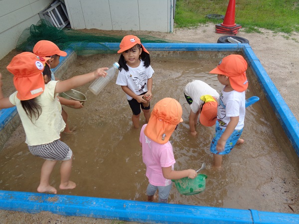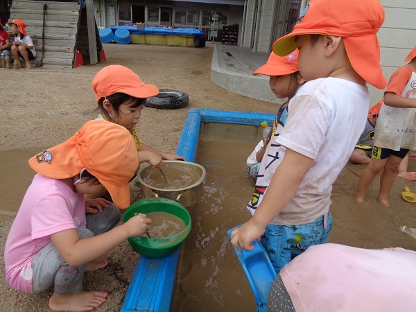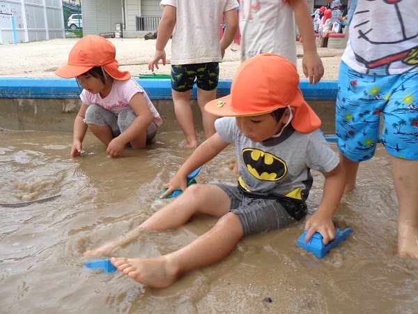 昨日からの警報が解除され、泥んこ遊びを楽しみました。