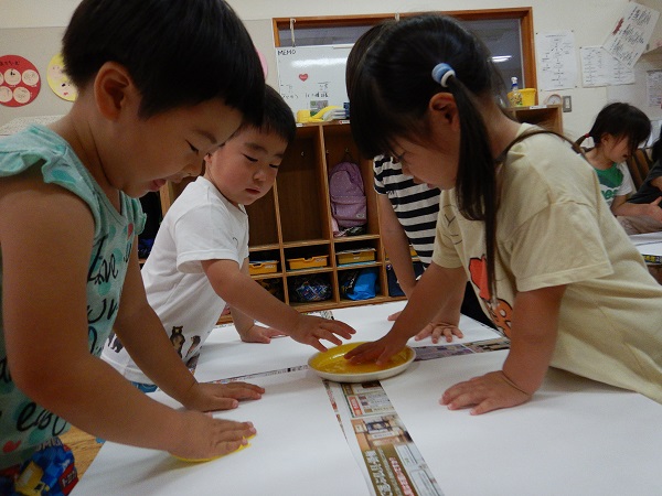 何度か画用紙を塗る製作をしたことがあったので、慣れた手つきで塗っていくばす組さんでしたよ!