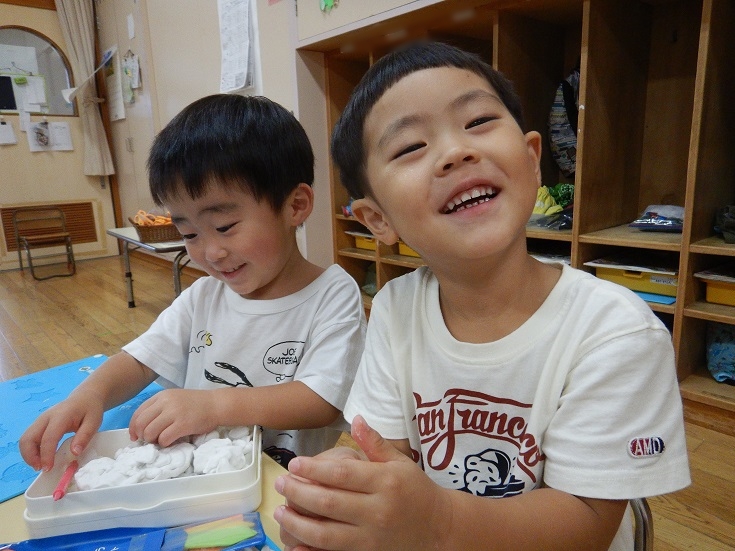 伸ばしたり、切ったり、丸めたりして思い思いに作って楽しむ子どもたちなのでした☆